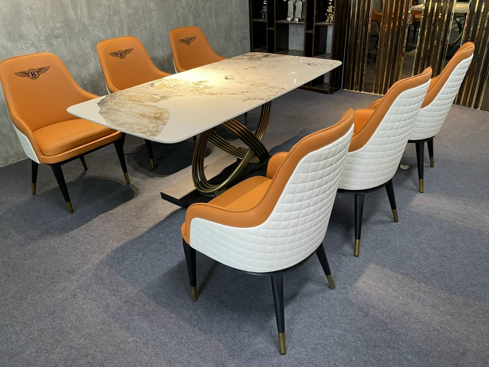 Bộ bàn ăn channel đế đen - ghế bentley cam trắng